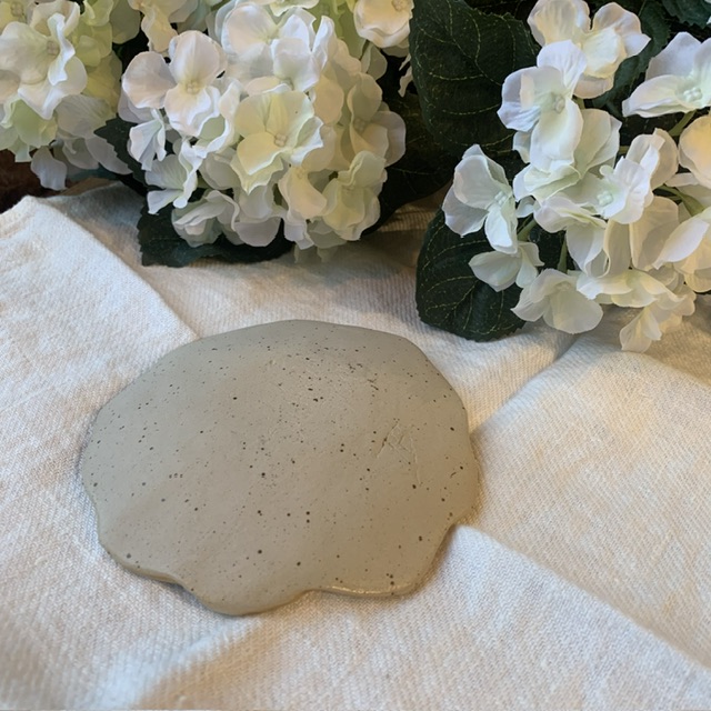 Handkavlad liten assiette. Till mat eller kanske till smycken. Gul med ”bruna korn” i leran. Vi drejar alla produkter i Roslagen.